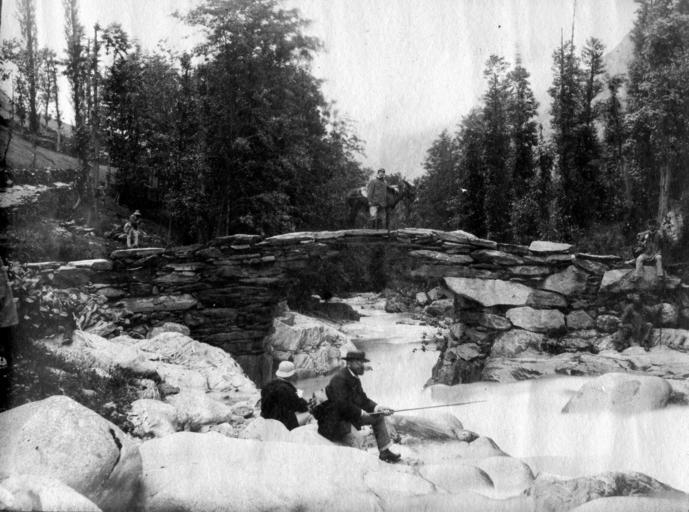 | Keywords: blackandwhite monochrome snowbank snow outdoor landscape water creek black and white Fonds Trutat - Photographie ancienne  Cote : TRU B 204 Localisation : Fonds ancien (S 30)  Original non communicable  Titre : Pont aux ânes, Auzat, 16 juillet 1882 (avec les gardes forestiers : Regnault, Cochet, de St-Venant)  Auteur : Trutat, Eugène Rôle de l’auteur : Photographe  Lieu de création : Vicdessos (Ariège ; canton) Date de création : 1882  Mesures : : 18 x 13 cm  Observations :  Notes manuscrites Trutat : "Obj[ectif] hémisph[érique] rapide ; papier Morgan ; B 188".  Mot(s)-clé(s) :  -- Montagne -- Rivière -- Rocher -- Pont -- Pierre -- Homme -- Pêcheur -- Pêche à la ligne -- Végétation -- Arbre -- Âne -- Garde forestier -- Versant -- Prairie -- Eté -- Regnault, Félix -- Cochet -- Saint Venant, de  -- Vicdessos (Ariège ; canton) -- Vicdessos (France ; vallée) -- Auzat (Ariège) -- Pyrénées (France)  -- 19e siècle, 4e quart  Médium : Photographies -- Négatifs sur papier -- Noir et blanc -- Morgan -- Portraits de groupe -- Paysages   Voir :  TRU B 205 Pont aux ânes, Auzat, 16 juillet 1882 (avec les   numerique.bibliotheque.toulouse.fr/cgi-bin/library?c=phot...  Bibliothèque de Toulouse. Domaine public   Fonds Trutat - Photographie ancienne  Cote : TRU B 204 Localisation : Fonds ancien (S 30)  Original non communicable  Titre : Pont aux ânes, Auzat, 16 juillet 1882 (avec les gardes forestiers : Regnault, Cochet, de St-Venant)  Auteur : Trutat, Eugène Rôle de l’auteur : Photographe  Lieu de création : Vicdessos (Ariège ; canton) Date de création : 1882  Mesures : : 18 x 13 cm  Observations :  Notes manuscrites Trutat : "Obj[ectif] hémisph[érique] rapide ; papier Morgan ; B 188".  Mot(s)-clé(s) :  -- Montagne -- Rivière -- Rocher -- Pont -- Pierre -- Homme -- Pêcheur -- Pêche à la ligne -- Végétation -- Arbre -- Âne -- Garde forestier -- Versant -- Prairie -- Eté -- Regnault, Félix -- Cochet -- Saint Venant, de  -- Vicdessos (Ariège ; canton) -- Vicdessos (France ; vallée) -- Auzat (Ariège) -- Pyrénées (France)  -- 19e siècle, 4e quart  Médium : Photographies -- Négatifs sur papier -- Noir et blanc -- Morgan -- Portraits de groupe -- Paysages   Voir :  TRU B 205 Pont aux ânes, Auzat, 16 juillet 1882 (avec les   numerique.bibliotheque.toulouse.fr/cgi-bin/library?c=phot...  Bibliothèque de Toulouse. Domaine public |