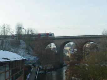 Keywords: Pont du RER à Orsay.JPG fr Pont du RER au dessus de l'Yvette Orsay Essonne own Véronique PAGNIER 10/01/2009 Paris RER ligne B Yvette River Bridges in Essonne Buildings in Orsay Viaducts in France