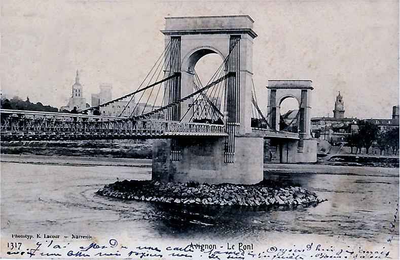 | Keywords: Pont suspendu 1904.jpg fr Pont suspendu d'Avignon enjambant le Rhône 2011-08-01 Scan old postcard early XXE s E Lacour Marseille PD-old Uploaded with UploadWizard Bridges in Vaucluse Old postcard of Rhône in Avignon Bridges over the Rhône River |