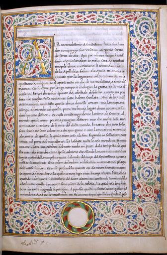 Keywords: Pope Gregory I - Leaf from Moralia in Job - Walters W3381R - Open Obverse.jpg ca 1480 Renaissance ink paint and red green and blue-colored gold leaf on parchment cm 30 8 21 8 accession number W 338 1R 7800 Ferdinand of Aragon Battista Pandolfini banker to Ferdinand of Aragon 1481 by exchange pledge for loan to finance the war against the Turks item 125 of the pledge is the first part of a Moralia not identified by DeMarinis in libraries of Spain Vienna or Paris See T Demarinis II 187-92 for text of 1481 pledge L S Olschki date and mode of acquisition unknown Henry Walters Baltimore date of acquisition unknown by purchase invoice no 35784 Walters Art Museum Henry Walters Acquired by Henry Walters Renaissance Books and Manuscripts of the Humanist Age The Walters Art Gallery Baltimore 1994-1995 Dressed in Gold Books of the Italian Renaissance The Walters Art Museum Baltimore 2005-2006 place of origin Naples Italy Walters Art Museum license 2D Walters MS W338 - Moralia in Job Humanistic script Media contributed by the Walters Art Museum needs category review |