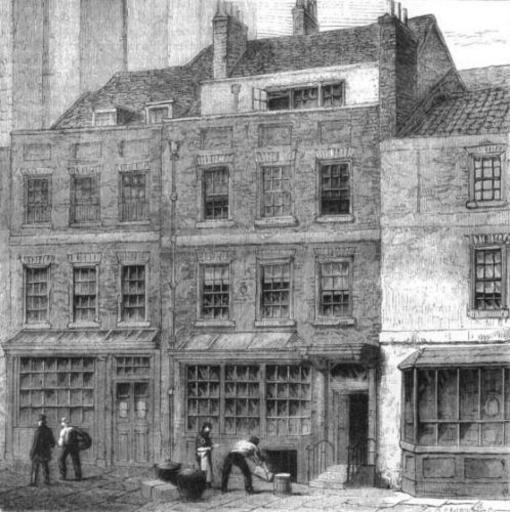 Keywords: Pope'sHouse.jpg en Birthplace of Alexander Pope Plough Court Lombard Street London Old and New London A Narrative of Its History Its People and Its Places Vol 1 Walter Thornbury 1872-8 Demolished buildings in the City of London Black white images of London Houses in the City of London Alexander Pope PD-old |