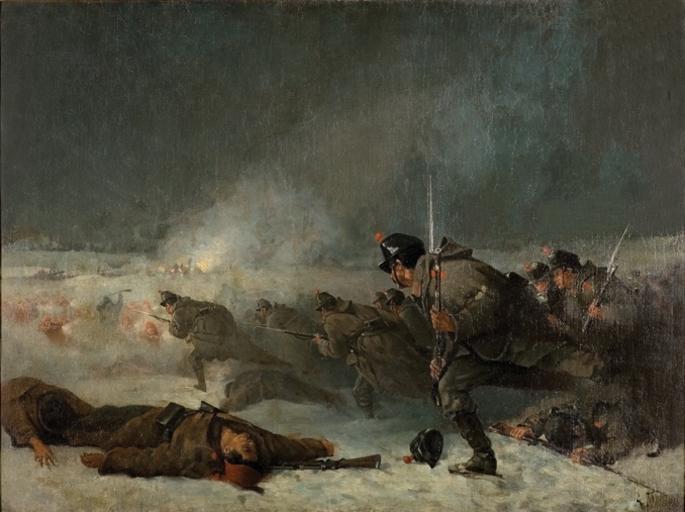 | Keywords: PopovAN 003.jpg  Artwork Creator Alexey Popov en Russian infantry attack Episode of the Russian-Turkish war of 1877-1878 s 1900 Oil on canvas cm 95 4 127 4 Private collection object history credit line accession number http //www kabinet-auktion com/auction/art14/10/ PD-old-70 Alexey Popov Russo-Turkish War 1877 “1878 |