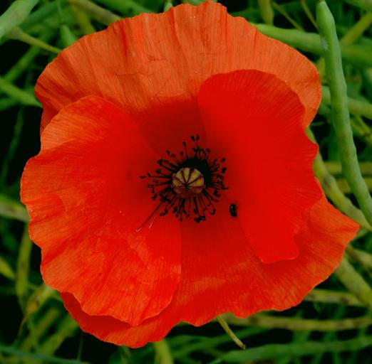 Keywords: poppy blossom bloom red poppy poppy flower klatschmohn red nature close beetle