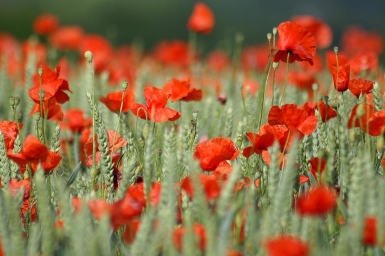 Keywords: poppy brightly colored red spring flower nature field garden fields summer petals field of poppies red flowers light blossomed fleurs des champs flowering hatching prairie wheat wheat fields cereals harvest epi agriculture landscape france rural cornfield corn agricultural reap