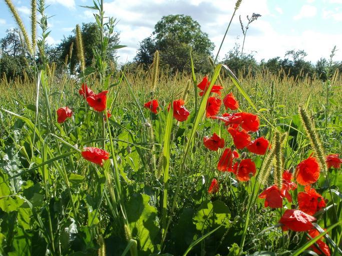 Keywords: poppy meadow papaver flower field red summer nature bloom flora green blossom wild plant bright season petal countryside colorful vibrant vivid papaveraceae grass botanical