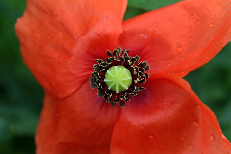 Keywords: poppy papaver rhoeas klatschmohn stamp stamen poppy flower wet raindrop meadow nature