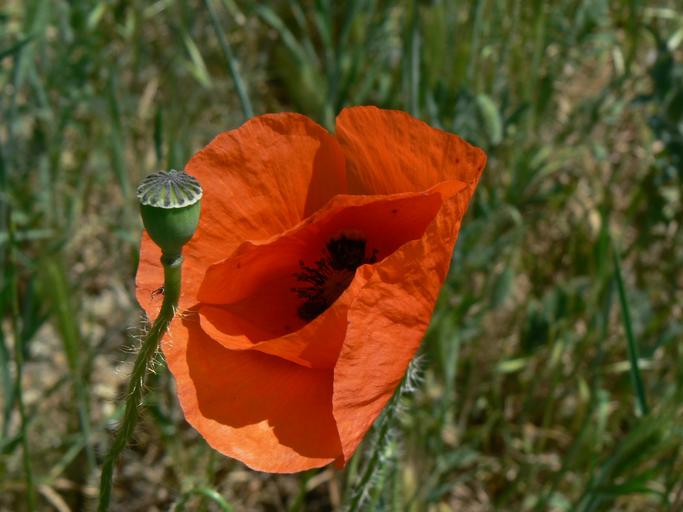 Keywords: poppy red bud grass green spring blossom flowers papaver rhoeas nature field summer