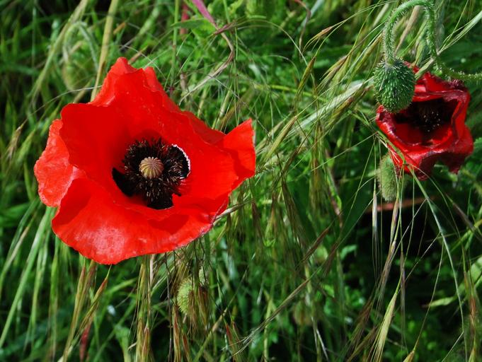 Keywords: poppy red field meadow grass countryside bud plant