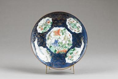 Keywords: Porslinsfat med famille verte gröna familjen - Hallwylska museet - 100927.tif LSH artwork sv FAT Runt skålformigt på låg fotkant Dekor i famille verte gröna familjen i fem utsparda konturerade fält mot mörkblå botten på denna växtornament i konturteckning i guld I mittenfältet en klippa krysantemumblommor en fågel I två av de omgivande fälten blommor i ett landskap med båt i det handra några av de hundra dyrbarheterna po ku Mellan fälten i guld tre enkla blommor; kring brädden en guldrand Bräddkanten i brunt Utsidan blå botten vit Glasyren på ett par ställen med obetydliga ojämnheter på bottens utsida ett långsträckt sår tillverkningsfel <br/>Inköpt av Wilhelmina von Hallwyl från konsthandlaren J Bosshard Luzern Schweiz 1911 ur August Edward Jessup 1861-1925 samling<br/>Porcelain dish with cobalt blue glaze overglaze enamel decoration and gilding<br/>Qing dynasty Kangxi period 1662-1722 <br/>Complex decoration in this style was popular because of its opulence First the dish had cobalt blue glaze blown onto the surface through a bamboo tube to give an effect called powder blue Shaped cartouches were left reserved in the blue glaze and the rim was dressed to strengthen it Then the dish was fired in a high-temperature kiln Delicate enamelled designs were painted within the cartouches and the dish was fired again at a lower temperature Then the blue-glazed portions were gilded and the piece was fired a third time original caption Porslinsfat med famille verte gröna familjen <br/> Nyckelord Föremålsbild Fat Porslin - 1662 1722 size mm 26 5 HWY place of origin CN original filename hm_dig16353 15421 inventory number HWY XLVIII VIII B e c 06 100927 CC-BY-SA Jens Mohr <gallery caption Different images of same object > File Baksidan av fat - Hallwylska museet - 100928 tif </gallery> Plates Porcelain Chinese ceramics in the Hallwyl Museum Sweden Glass Vessel container Ceramics of Korea Ceramics of Japan Ceramics Jens Mohr Media contributed by LSH 2015-11 |
