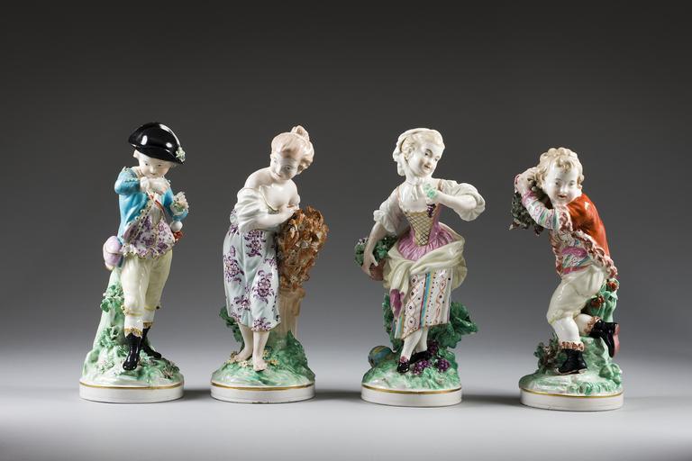 | Keywords: Porslinsfigurer. Årstiderna - Hallwylska museet - 87116.jpg Assessments 1 Porcelain figurines The seasons Gruppen av fyra ungdomar representerande årstiderna stående på varsin rund ihålig fotplatta med ett hål på undersidan samt tre s k patch-marks Dekor i färger och guld på glasyren De utgör fyra kopior av åtta kopierade av Derby från en modell tillverkad i Tournai omkring 1760 av modellören N J F Gauron efter teckningar av Boucher Gauron som arbetat vid Tournai kom till England omkring 1770 för att istället arbeta hos William Duesbury i Derby där han reproducerade en del av sina tidigare modeller Våren Gosse med blommor i händerna Sommar Flicka som håller en sädeskärve Hösten Flicka med korg fylld med vindruvor Vintern Gosse bärande ett grenvedsknippe på högra axeln Fabriken grundlagd i Chelsea under 1740-talet men stod under åren 1770-1784 under samma ledning som fabriken i Derby Pris 1 200kr Se Huvudbok hushållskonto Betalda jan 1922 original caption Porslinsfigurer Årstiderna HWY Gr XLVII III C a 01 <br/> Nyckelord Porslinsfigurer Årstiderna Europeiskt Porslin Föremålsbild decade other date - 1770 1780 size cm 9 fotplatta våren size cm 8 8 fotplatta hösten size cm 23 6 våren size cm 9 fotplatta vintern size cm 9 1 fotplatta sommaren size cm 22 1 vintern size cm 23 3 sommaren size cm 23 3 hösten HWY place of origin England original filename hm_dig4755_6874 17563 inventory number HWY XLVII III C a 01 87116 CC-BY-SA Jens Mohr <gallery caption Different images of same object > File Porslin Två figuriner - Hallwylska museet - 89117 tif File Porslin Figurin - Hallwylska museet - 89301 tif File Porslin Figurin - Hallwylska museet - 89116 tif File Porslin Figurin - Hallwylska museet - 89115 tif </gallery> Jens Mohr Porcelain sculptures Porcelain in the Hallwyl museum Media contributed by LSH dim-with multiple size templates Media contributed by LSH unmatched creator Media contributed by LSH unmatched keyword Featured pictures of objects Featured pictures of Stockholm Featured pictures by others nominated by Yann Forget |