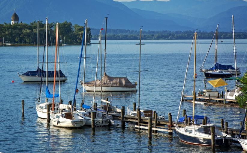 Keywords: port boats anchorage lake chiemsee sailing vessel recovery sailing boat leisure water sports shipping pier