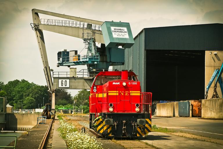 Keywords: port crane harbour crane water envelope loading crane rhine industry inland port harbour cranes marketing hub düsseldorf anchorage loco diesel locomotive locomotive gleise