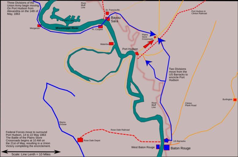 | Keywords: Port Hudson Plains Store Four.svg en Sketch map showing the movement of Union forces to invest the Confederate fortifications of Port Hudson Louisiana May 14-22 1863 own Calendar5 2011-02-28 Port_Hudson_Plains_Store_Three png Cc-zero Maps showing 19th-century history |