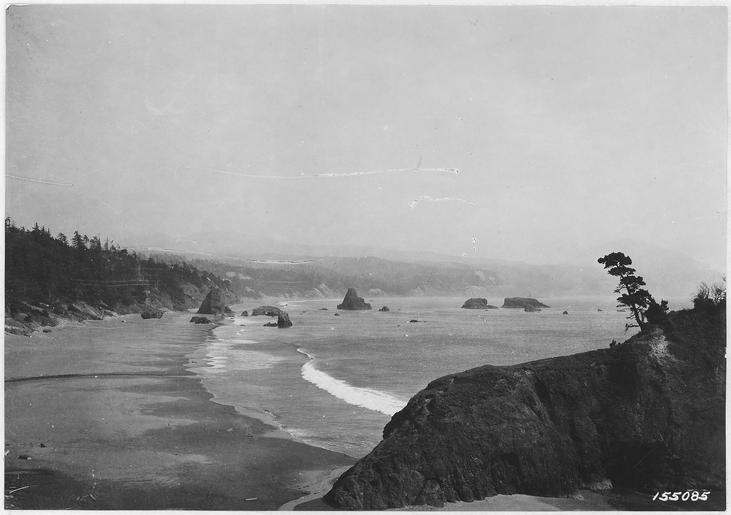 View Original:Port_Orford_Beach,_Battle_Rock_in_foreground,_Umatilla_Forest,_1920._-_NARA_-_299194.tif (3000x2114)