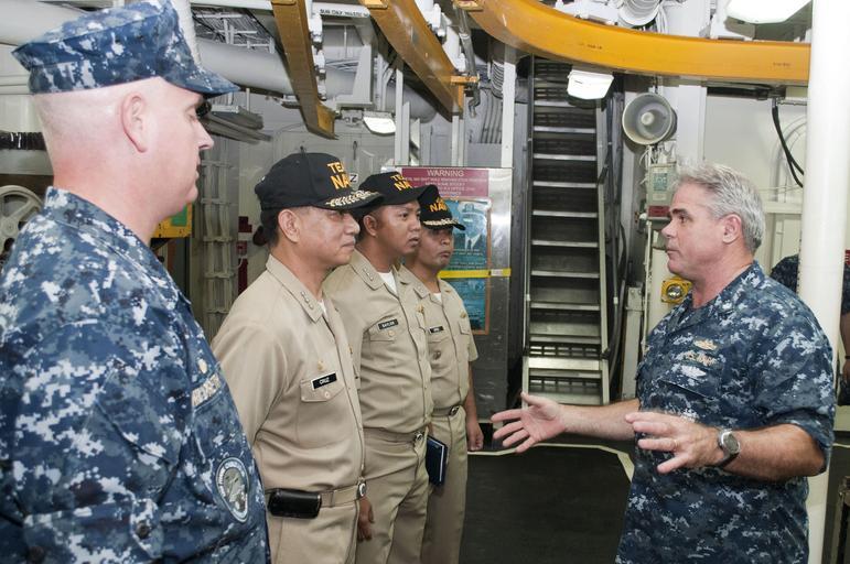 | Keywords: Port visit 120904-N-CB621-059.jpg en Cdr Timothy Sparks executive officer of the submarine tender USS Frank Cable AS 40 gives an overview of the outdoor machine shop to Capt Alberto Cruz the commanding officer of the Republic of the Philippines navy frigate BRP Gregorio Del Pilar PF 15 Frank Cable sailors are taking the opportunity to provide technical assistance and conduct training with the crew of Gregorio Del Pilar during a port visit U S Navy photo by Mass Communication Specialist 1st Class Jason C Swink 2012-09-04 Petty Officer 1st Class Jason Swink https //www dvidshub net/image/764677 120904-N-CB621-059 2012-10-21 15 51 SUBIC BAY PH PD-USGov-Military-Navy USS Frank Cable AS-40 Images from DoD uploaded by Fæ |