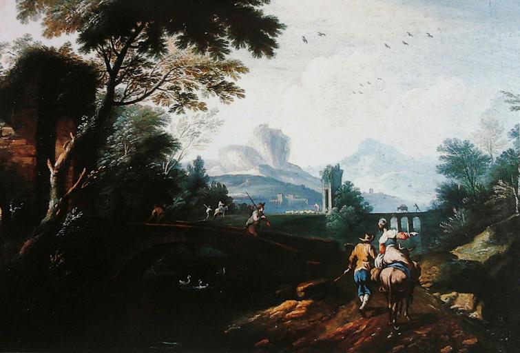 Keywords: Porta Landscape with a river.jpg Artwork Creator Tommaso Porta firsthalf other date century 18 oil canvas cm 63 93 Institution Warsaw Royal Castle King's Dressing Room accession number ZKW 2008 object history ProvenanceEvent 1986 purchase Royal Castle Warsaw Private collection Warsaw credit line Porta f signature back Dorota Juszczak Hanna Małachowicz 2007 Zamek Królewski w Warszawie malarstwo do 1900 katalog zbiorów Zamek Królewski w Warszawie ISBN 83-70221-68-8 cat no 258 p 403 own BurgererSF See below PD-old-100 DEFAULTSORT 1750 before; Landscape with a river Tommaso Porta Italian paintings in the Royal Castle in Warsaw 18th-century landscape paintings 1701-1750 paintings
