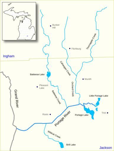 | Keywords: Portage River (Grand River Watershed) Map US MI.svg  Portage River in the Grand River Watershed in Michigan USA Self-made using OpenJUMP with http //www mcgi state mi us/mgdl/ rel ext action sext State of Michigan GIS data and Inkscape Bamyers99 <span class signature-talk >talk</span> 2011-02-13 Cc-zero Maps of rivers in Michigan |