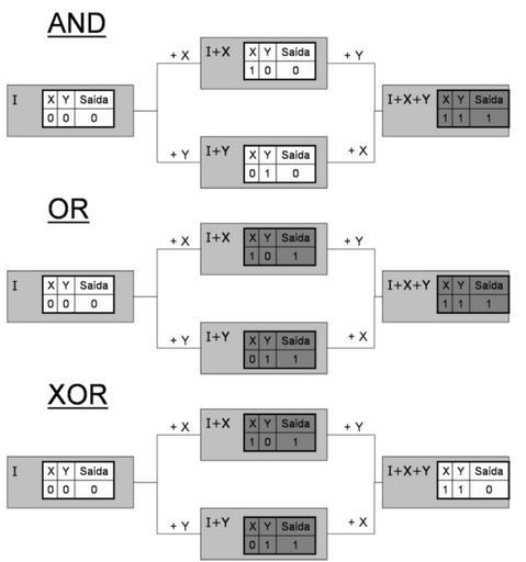 Keywords: Portais lógicos.png en truth table of molecules used as Logic Gates AND OR XOR based in image from J Am Chem Soc 1997 119 2679-2681 pt tabela da verdade de moléculas usadas como Portais Lógicos tipo AND XOR e OR baseado em imagem do trabalho J Am Chem Soc 1997 119 2679-2681 Own W2raphael 2008-12-21 Logic gates |