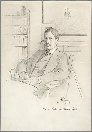 Keywords: Portait of Thorsten Laurin (Carl Larsson) - Nationalmuseum - 138256.tif Thorsten Laurin information field Creator Carl Larsson Portait of Thorsten Laurin Thorsten Laurin was a book publisher at the family business Norstedts and was also one of the great art collectors in his day “ two sides that are suggested by the book spines and works of art in the background He was also one of Larsson ™s closest friends and gave him advice assignments and contacts For his new villa on DjurgĂ„rden he bought Larsson ™s monumental painting My Family He and his brother Carl G Laurin were key figures on the contemporary art scene and were founder members of the Friends of the Nationalmuseum Thorsten Laurin var bokförlĂ€ggare i fa-miljeföretaget Norstedts och en av tiÂŹdens stora konstsamlare “ roller som antyds av bokryggarna och konstverken i bakgrunden Han var ocksĂ„ en av Larssons nĂ€ra förtrogna och bistod sin vĂ€n med rĂ„d uppdrag och kontakter För sin nyuppförda villa pĂ„ DjurgĂ„rden köpte han Larssons stora mĂ„lning De mina Tillsammans med brodern Carl G Laurin spelade han en viktig roll i tidens konstliv och var bland annat initiativÂŹtagare till föreningen Nationalmusei VĂ€nner header Thorsten Laurin was a book publisher at the family business Norstedts and was also one of the great art collectors in his day “ two sides that are suggested by the book spines and works of art in the background He was also one of Larsson ™s closest friends and gave him advice assignments and contacts For his new villa on DjurgĂ„rden he bought Larsson ™s monumental painting My Family He and his brother Carl G Laurin were key figures on the contemporary art scene and were founder members of the Friends of the Nationalmuseum Thorsten Laurin var bokförlĂ€ggare i fa-miljeföretaget Norstedts och en av tiÂŹdens stora konstsamlare “ roller som antyds av bokryggarna och konstverken i bakgrunden Han var ocksĂ„ en av Larssons nĂ€ra förtrogna och bistod sin vĂ€n med rĂ„d uppdrag och kontakter För sin nyuppförda villa pĂ„ DjurgĂ„rden köpte han Larssons stora mĂ„lning De mina Tillsammans med brodern Carl G Laurin spelade han en viktig roll i tidens konstliv och var bland annat initiativÂŹtagare till föreningen Nationalmusei VĂ€nner 1908 Charcoal and water colour on paper Kol och akvarell pĂ„ papper Size cm 35 5 50 8 Institution Nationalmuseum Stockholm Till min kĂ€ra vĂ€n Thorsten Laurin recto nere till höger Signerad C L i en cirkel recto nere till höger accession number 138256 NMB 2636 place of creation Cecilia Heisser / Nationalmuseum Nationalmuseum Stockholm cooperation project Licensed-PD-Art PD-old-auto PD-Nationalmuseum_Stockholm 1919 Media contributed by Nationalmuseum Stockholm 2016-10 Media contributed by Nationalmuseum Stockholm unlinked depicted Paintings in the Nationalmuseum Stockholm Paintings by Carl Larsson