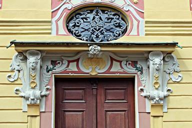 Keywords: portal facade stucco work ornament historically old town building input cathedral architecture home