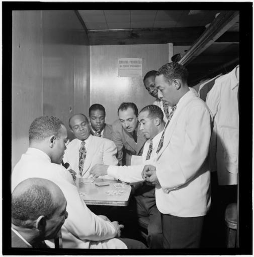| Keywords: (Portrait of Al Sears, Shelton Hemphill, Junior Raglin, Django Reinhardt, Lawrence Brown, Harry Carney, and Johnny Hodges, Aquarium, New York, N.Y., ca. Nov. 1946) (LOC) (4843127353).jpg Gottlieb William P 1917- photographer Portrait of Al Sears Shelton Hemphill Junior Raglin Django Reinhardt Lawrence Brown Harry Carney and Johnny Hodges Aquarium New York N Y ca Nov 1946 1 negative b w ; 2 1/4 x 2 1/4 in Notes Gottlieb Collection Assignment No 038 Reference print available in Music Division Library of Congress Purchase William P Gottlieb Forms part of William P Gottlieb Collection Library of Congress Subjects Sears Al 1910- Hemphill Shelton Raglin Junior 1917-1955 Reinhardt Django 1910-1953 Brown Lawrence 1907-1988 Carney Harry Hodges Johnny Duke Ellington Orchestra Jazz musicians--1940-1950 Big bands--1940-1950 Aquarium Format Portrait photographs--1940-1950 Group portraits--1940-1950 Film negatives--1940-1950 Rights Info Mr Gottlieb has dedicated these works to the public domain but rights of privacy and publicity may apply http //lcweb2 loc gov/diglib/ihas/html/gottlieb/gottlieb-copyright html lcweb2 loc gov/diglib/ihas/html/gottlieb/gottlieb-copyrig Repository negative Library of Congress Prints Photographs Division Washington D C 20540 USA http //hdl loc gov/loc pnp/pp print hdl loc gov/loc pnp/pp print reference print Library of Congress Music Division Washington D C 20540 USA http //loc gov/rr/perform/ loc gov/rr/perform/ Part Of William P Gottlieb Collection DLC 99-401005 General information about the Gottlieb Collection is available at http //lcweb2 loc gov/diglib/ihas/html/gottlieb/gottlieb-home html lcweb2 loc gov/diglib/ihas/html/gottlieb/gottlieb-home html Persistent URL http //hdl loc gov/loc music/gottlieb 02391 hdl loc gov/loc music/gottlieb 02391 Call Number LC-GLB23- 0239<br/> PD-Gottlieb https //www flickr com/photos/library_of_congress/4843127353/ Portrait of Al Sears Shelton Hemphill Junior Raglin Django Reinhardt Lawrence Brown Harry Carney and Johnny Hodges Aquarium New York N Y ca Nov 1946 LOC https //www flickr com/people/8623220 N02 The Library of Congress http //www loc gov/rr/print/195_copr html noknown The Library of Congress Flickr Commons Flickr-no known copyright restrictions The Library of Congress https //flickr com/photos/8623220 N02/4843127353 2015-09-01 22 54 02 pd Photographs by William P Gottlieb |