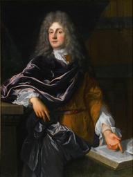 | Keywords: Portrait of an Elegant Man, Three-Quarter Length, Standing and Pointing Towards the Pages of an Open Book by François de Troy.jpg en Portrait of an Elegant Man Three-Quarter Length Standing and Pointing Towards the Pages of an Open Book by François de Troy oil on canvas 130 2 by 97 8 cm This painting is the mate to Portrait of an Elegant Woman Three-Quarter Length Standing before a Fountain Her Arm Resting on an Urn with Flowers Sotheby's François de Troy Portrait paintings by François de Troy PD-old-100 Images from Sotheby's |