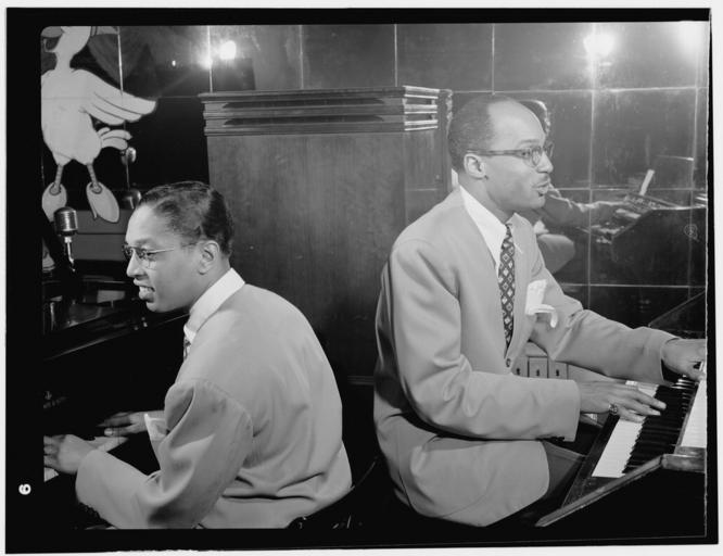 | Keywords: (Portrait of Billy Taylor and Bob Wyatt, New York, N.Y., between 1946 and 1948) (LOC) (5436431822).jpg Gottlieb William P 1917- photographer Portrait of Billy Taylor and Bob Wyatt New York N Y between 1946 and 1948 1 negative b w ; 3 1/4 x 4 1/4 in Notes Gottlieb Collection Assignment No 299 Purchase William P Gottlieb Forms part of William P Gottlieb Collection Library of Congress Subjects Taylor Billy 1921- Wyatt Bob Jazz musicians--1940-1950 Pianists--1940-1950 Format Portrait photographs--1940-1950 Group portraits--1940-1950 Film negatives--1940-1950 Rights Info Mr Gottlieb has dedicated these works to the public domain but rights of privacy and publicity may apply http //lcweb2 loc gov/diglib/ihas/html/gottlieb/gottlieb-copyright html lcweb2 loc gov/diglib/ihas/html/gottlieb/gottlieb-copyrig Repository negative Library of Congress Prints Photographs Division Washington D C 20540 USA http //hdl loc gov/loc pnp/pp print hdl loc gov/loc pnp/pp print Part Of William P Gottlieb Collection DLC 99-401005 General information about the Gottlieb Collection is available at http //lcweb2 loc gov/diglib/ihas/html/gottlieb/gottlieb-home html lcweb2 loc gov/diglib/ihas/html/gottlieb/gottlieb-home html Persistent URL http //hdl loc gov/loc music/gottlieb 15421 hdl loc gov/loc music/gottlieb 15421 Call Number LC-GLB23- 1542<br/> PD-Gottlieb https //www flickr com/photos/library_of_congress/5436431822/ Portrait of Billy Taylor and Bob Wyatt New York N Y between 1946 and 1948 LOC https //www flickr com/people/8623220 N02 The Library of Congress http //www loc gov/rr/print/195_copr html noknown The Library of Congress Flickr Commons Flickr-no known copyright restrictions The Library of Congress https //flickr com/photos/8623220 N02/5436431822 2015-09-02 00 11 31 pd Photographs by William P Gottlieb Bob Wyatt Billy Taylor |