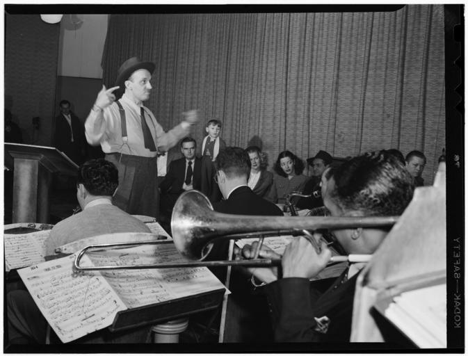 | Keywords: (Portrait of Brick Fleagle, Sandy Williams, and Mrs. Brick Fleagle, Nola's, New York, N.Y., ca. Feb. 1947) (LOC) (4977077546).jpg Gottlieb William P 1917- photographer Portrait of Brick Fleagle Sandy Williams and Mrs Brick Fleagle Nola's New York N Y ca Feb 1947 1 negative b w ; 3 1/4 x 4 1/4 in Caption from Down Beat Brick Fleagel leading with Sandy Williams trombone in foreground Spectators in background include Brick's brunet wife Notes Gottlieb Collection Assignment No 514 Reference print available in Music Division Library of Congress Purchase William P Gottlieb Forms part of William P Gottlieb Collection Library of Congress In Nola Studios is meeting place for NYC musicians Down Beat v 14 no 5 Feb 26 1947 p 15 Subjects Fleagle Brick Williams Sandy 1906- Fleagle Mrs Brick Jazz musicians--1940-1950 Guitarists--1940-1950 Conductors Music --1940-1950 Nola's Format Portrait photographs--1940-1950 Group portraits--1940-1950 Film negatives--1940-1950 Rights Info Mr Gottlieb has dedicated these works to the public domain but rights of privacy and publicity may apply http //lcweb2 loc gov/diglib/ihas/html/gottlieb/gottlieb-copyright html lcweb2 loc gov/diglib/ihas/html/gottlieb/gottlieb-copyrig Repository negative Library of Congress Prints Photographs Division Washington D C 20540 USA http //hdl loc gov/loc pnp/pp print hdl loc gov/loc pnp/pp print reference print Library of Congress Music Division Washington D C 20540 USA http //loc gov/rr/perform/ loc gov/rr/perform/ Part Of William P Gottlieb Collection DLC 99-401005 General information about the Gottlieb Collection is available at http //lcweb2 loc gov/diglib/ihas/html/gottlieb/gottlieb-home html lcweb2 loc gov/diglib/ihas/html/gottlieb/gottlieb-home html Persistent URL http //hdl loc gov/loc music/gottlieb 02911 hdl loc gov/loc music/gottlieb 02911 Call Number LC-GLB13- 0291<br/> PD-Gottlieb https //www flickr com/photos/library_of_congress/4977077546/ Portrait of Brick Fleagle Sandy Williams and Mrs Brick Fleagle Nola's New York N Y ca Feb 1947 LOC https //www flickr com/people/8623220 N02 The Library of Congress http //www loc gov/rr/print/195_copr html noknown The Library of Congress Flickr Commons Flickr-no known copyright restrictions The Library of Congress https //flickr com/photos/8623220 N02/4977077546 2015-09-01 22 57 38 pd Photographs by William P Gottlieb Brick Fleagle |