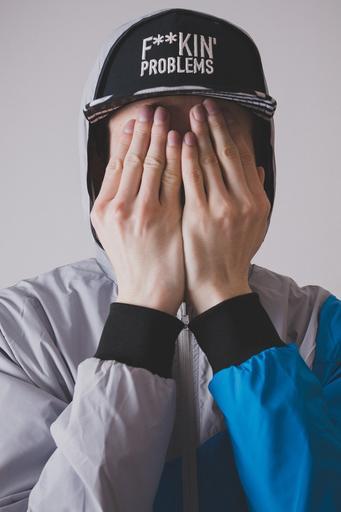 Keywords: portrait caps snapback cap hood hide the face male the hands on the face teenager