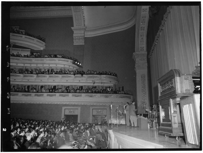 | Keywords: (Portrait of Dizzy Gillespie and Charlie Parker, Carnegie Hall, New York, N.Y., ca. Oct. 1947) (LOC) (4976471831).jpg Gottlieb William P 1917- photographer Portrait of Dizzy Gillespie and Charlie Parker Carnegie Hall New York N Y ca Oct 1947 1 negative b w ; 3 1/4 x 4 1/4 in Notes Gottlieb Collection Assignment No 526 Reference print available in Music Division Library of Congress Purchase William P Gottlieb Forms part of William P Gottlieb Collection Library of Congress Subjects Gillespie Dizzy 1917- Parker Charlie 1920-1955 Jazz musicians--1940-1950 Trumpet players--1940-1950 Conductors Music --1940-1950 Saxophonists--1940-1950 Carnegie Hall Format Portrait photographs--1940-1950 Cityscape photographs--1940-1950 Film negatives--1940-1950 Rights Info Mr Gottlieb has dedicated these works to the public domain but rights of privacy and publicity may apply http //lcweb2 loc gov/diglib/ihas/html/gottlieb/gottlieb-copyright html lcweb2 loc gov/diglib/ihas/html/gottlieb/gottlieb-copyrig Repository negative Library of Congress Prints Photographs Division Washington D C 20540 USA http //hdl loc gov/loc pnp/pp print hdl loc gov/loc pnp/pp print reference print Library of Congress Music Division Washington D C 20540 USA http //loc gov/rr/perform/ loc gov/rr/perform/ Part Of William P Gottlieb Collection DLC 99-401005 General information about the Gottlieb Collection is available at http //lcweb2 loc gov/diglib/ihas/html/gottlieb/gottlieb-home html lcweb2 loc gov/diglib/ihas/html/gottlieb/gottlieb-home html Persistent URL http //hdl loc gov/loc music/gottlieb 03281 hdl loc gov/loc music/gottlieb 03281 Call Number LC-GLB23- 0328<br/> PD-Gottlieb https //www flickr com/photos/library_of_congress/4976471831/ Portrait of Dizzy Gillespie and Charlie Parker Carnegie Hall New York N Y ca Oct 1947 LOC https //www flickr com/people/8623220 N02 The Library of Congress http //www loc gov/rr/print/195_copr html noknown The Library of Congress Flickr Commons Flickr-no known copyright restrictions The Library of Congress https //flickr com/photos/8623220 N02/4976471831 2015-09-01 22 55 25 pd Photographs by William P Gottlieb |