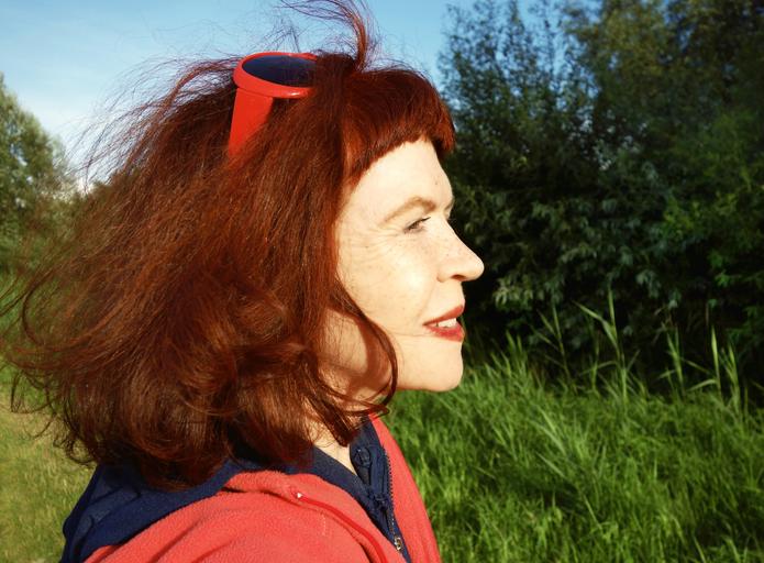 Keywords: portrait face profile woman caucasian fashion fashion model hair windblown hair red red hair mahogany attractive red head pale