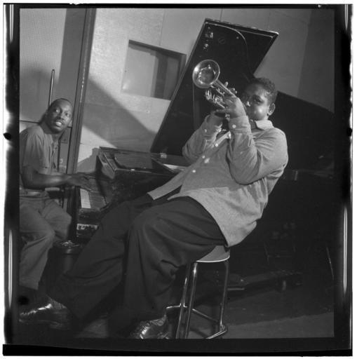 | Keywords: (Portrait of Fats Navarro and Tadd Dameron, New York, N.Y., between 1946 and 1948) (LOC) (5435808637).jpg Gottlieb William P 1917- photographer Portrait of Fats Navarro and Tadd Dameron New York N Y between 1946 and 1948 1 negative b w ; 2 1/4 x 2 1/4 in Notes Gottlieb Collection Assignment No 095 Purchase William P Gottlieb Forms part of William P Gottlieb Collection Library of Congress Subjects Navarro Fats d 1950 Dameron Tadd 1917-1965 Jazz musicians--1940-1950 Trumpet players--1940-1950 Pianists--1940-1950 Format Portrait photographs--1940-1950 Group portraits--1940-1950 Film negatives--1940-1950 Rights Info Mr Gottlieb has dedicated these works to the public domain but rights of privacy and publicity may apply http //lcweb2 loc gov/diglib/ihas/html/gottlieb/gottlieb-copyright html lcweb2 loc gov/diglib/ihas/html/gottlieb/gottlieb-copyrig Repository negative Library of Congress Prints Photographs Division Washington D C 20540 USA http //hdl loc gov/loc pnp/pp print hdl loc gov/loc pnp/pp print Part Of William P Gottlieb Collection DLC 99-401005 General information about the Gottlieb Collection is available at http //lcweb2 loc gov/diglib/ihas/html/gottlieb/gottlieb-home html lcweb2 loc gov/diglib/ihas/html/gottlieb/gottlieb-home html Persistent URL http //hdl loc gov/loc music/gottlieb 14481 hdl loc gov/loc music/gottlieb 14481 Call Number LC-GLB23- 1448<br/> PD-Gottlieb https //www flickr com/photos/library_of_congress/5435808637/ Portrait of Fats Navarro and Tadd Dameron New York N Y between 1946 and 1948 LOC https //www flickr com/people/8623220 N02 The Library of Congress http //www loc gov/rr/print/195_copr html noknown The Library of Congress Flickr Commons Flickr-no known copyright restrictions The Library of Congress https //flickr com/photos/8623220 N02/5435808637 2015-09-01 22 56 03 pd Photographs by William P Gottlieb Fats Navarro Tadd Dameron |