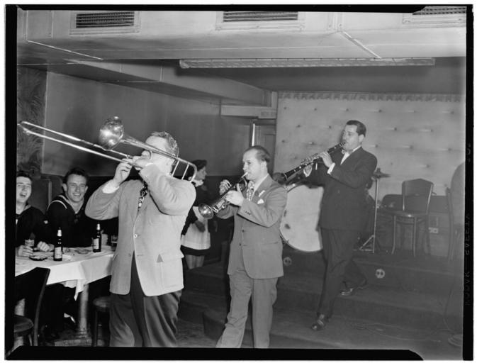 | Keywords: (Portrait of George Brunis and Tony Parenti, Jimmy Ryan's (Club), New York, N.Y., ca. Aug. 1946) (LOC) (5189939018).jpg Gottlieb William P 1917- photographer Portrait of George Brunis and Tony Parenti Jimmy Ryan's Club New York N Y ca Aug 1946 1 negative b w ; 3 1/4 x 4 1/4 in Notes Gottlieb Collection Assignment No 041 Purchase William P Gottlieb Forms part of William P Gottlieb Collection Library of Congress Subjects Brunis George 1900-1974 Parenti Tony 1900-1972 Jazz musicians--1940-1950 Trombonists--1940-1950 Trumpet players--1940-1950 Clarinetists--1940-1950 Fifty-second Street New York N Y --1940-1950 Jimmy Ryan's Club Format Portrait photographs--1940-1950 Group portraits--1940-1950 Film negatives--1940-1950 Rights Info Mr Gottlieb has dedicated these works to the public domain but rights of privacy and publicity may apply http //lcweb2 loc gov/diglib/ihas/html/gottlieb/gottlieb-copyright html lcweb2 loc gov/diglib/ihas/html/gottlieb/gottlieb-copyrig Repository negative Library of Congress Prints Photographs Division Washington D C 20540 USA http //hdl loc gov/loc pnp/pp print hdl loc gov/loc pnp/pp print Part Of William P Gottlieb Collection DLC 99-401005 General information about the Gottlieb Collection is available at http //lcweb2 loc gov/diglib/ihas/html/gottlieb/gottlieb-home html lcweb2 loc gov/diglib/ihas/html/gottlieb/gottlieb-home html Persistent URL http //hdl loc gov/loc music/gottlieb 09861 hdl loc gov/loc music/gottlieb 09861 Call Number LC-GLB13- 0986<br/> PD-Gottlieb https //www flickr com/photos/library_of_congress/5189939018/ Portrait of George Brunis and Tony Parenti Jimmy Ryan's Club New York N Y ca Aug 1946 LOC https //www flickr com/people/8623220 N02 The Library of Congress http //www loc gov/rr/print/195_copr html noknown The Library of Congress Flickr Commons Flickr-no known copyright restrictions The Library of Congress https //flickr com/photos/8623220 N02/5189939018 2015-09-01 22 50 13 pd Photographs by William P Gottlieb Jimmy Ryan ™s jazz club |