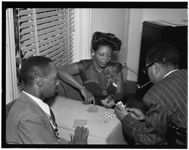 | Keywords: (Portrait of Tadd Dameron, Mary Lou Williams, and Dizzy Gillespie, Mary Lou Williams' apartment, New York, N.Y., ca. Aug. 1947) (LOC) (5476589018).jpg Gottlieb William P 1917- photographer Portrait of Tadd Dameron Mary Lou Williams and Dizzy Gillespie Mary Lou Williams' apartment New York N Y ca Aug 1947 1 negative b w ; 3 1/4 x 4 1/4 in Notes Gottlieb Collection Assignment No 338 Purchase William P Gottlieb Forms part of William P Gottlieb Collection Library of Congress Subjects Dameron Tadd 1917-1965 Williams Mary Lou 1910- Gillespie Dizzy 1917- Women jazz musicians--1940-1950 Jazz musicians--1940-1950 Format Portrait photographs--1940-1950 Group portraits--1940-1950 Film negatives--1940-1950 Rights Info Mr Gottlieb has dedicated these works to the public domain but rights of privacy and publicity may apply http //lcweb2 loc gov/diglib/ihas/html/gottlieb/gottlieb-copyright html lcweb2 loc gov/diglib/ihas/html/gottlieb/gottlieb-copyrig Repository negative Library of Congress Prints Photographs Division Washington D C 20540 USA http //hdl loc gov/loc pnp/pp print hdl loc gov/loc pnp/pp print Part Of William P Gottlieb Collection DLC 99-401005 General information about the Gottlieb Collection is available at http //lcweb2 loc gov/diglib/ihas/html/gottlieb/gottlieb-home html lcweb2 loc gov/diglib/ihas/html/gottlieb/gottlieb-home html Persistent URL http //hdl loc gov/loc music/gottlieb 16011 hdl loc gov/loc music/gottlieb 16011 Call Number LC-GLB23- 1601<br/> PD-Gottlieb https //www flickr com/photos/library_of_congress/5476589018/ Portrait of Tadd Dameron Mary Lou Williams and Dizzy Gillespie Mary Lou Williams' apartment New York N Y ca Aug 1947 LOC https //www flickr com/people/8623220 N02 The Library of Congress http //www loc gov/rr/print/195_copr html noknown The Library of Congress Flickr Commons Flickr-no known copyright restrictions The Library of Congress https //flickr com/photos/8623220 N02/5476589018 2015-09-02 00 14 11 pd Pipe smoking Window blinds Photographs by William P Gottlieb |