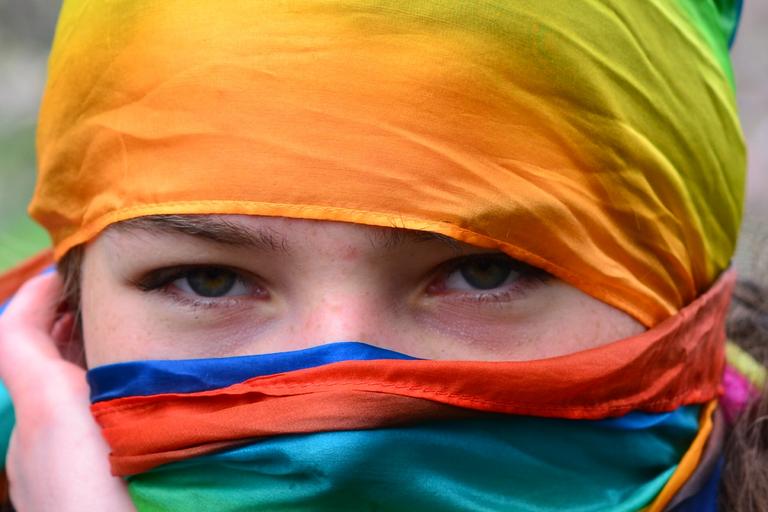 Keywords: portrait veil human girl face youth head scapf covered eyes