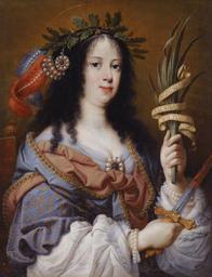 Keywords: Portrait of Vittoria della Rovere (1622-1667) as Saint Vittoria by Mario Balassi.jpg 1637 oil on canvas cm 83 64 object history credit line MAR / BALASSI / F signature/date lower left accession number http //www sothebys com/en/catalogues/ecatalogue html/2008/old-master-paintings-day-sale-l08037 /r /en/ecat fhtml L08037 html+r m /en/ecat lot L08037 html/178/ Sotheby's PD-old Vittoria della Rovere Mario Balassi Paintings of flowers Females with pearl jewellery in art Feathers in art Portraits holding feathers Saint Victoria of Córdoba Portraits with swords Portraits as christian saints Portrait paintings of women of Italy Images from Sotheby's |