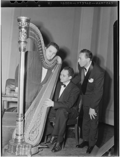 | Keywords: (Portrait of Woody Herman, Chubby Jackson, and Abraham Rosen, Carnegie Hall(?), New York, N.Y., ca. Apr. 1946) (LOC) (5019789769).jpg Gottlieb William P 1917- photographer Portrait of Woody Herman Chubby Jackson and Abraham Rosen Carnegie Hall New York N Y ca Apr 1946 1 negative b w ; 3 1/4 x 4 1/4 in Caption from Down Beat Prior to Woody Herman's recent very successful Carnegie Hall concert the band put in several days of serious rehearsing of both their own jump numbers and in particular on Igor Stravinsky's Ebony Concerto Top photo shows Walter Hendl rehearsing the Herd he conducted the Concerto at the concert and during the air premiere while at the bottom Chubby Jackson doesn't seem to dig the addition of the harp which was used in the number Abraham Rosen is the harpist the third figure of course is Woody Musicians in the top shot are Tony Aless piano; Bill Bauer guitar; Chubby Jackson bass; Don Lamond drums; Woody Herman clarinet; and Flip Phillips tenor Notes Gottlieb Collection Assignment No 403 Reference print available in Music Division Library of Congress Purchase William P Gottlieb Forms part of William P Gottlieb Collection Library of Congress In 'Twas not all for naught Down Beat v 13 no 9 Apr 22 1946 p 3 Subjects Herman Woody 1913-1987 Jackson Chubby Rosen Abraham Jazz musicians--1940-1950 Clarinetists--1940-1950 Double bassists--1940-1950 Harpists--1940-1950 Carnegie Hall Format Portrait photographs--1940-1950 Cityscape photographs--1940-1950 Film negatives--1940-1950 Rights Info Mr Gottlieb has dedicated these works to the public domain but rights of privacy and publicity may apply http //lcweb2 loc gov/diglib/ihas/html/gottlieb/gottlieb-copyright html lcweb2 loc gov/diglib/ihas/html/gottlieb/gottlieb-copyrig Repository negative Library of Congress Prints Photographs Division Washington D C 20540 USA http //hdl loc gov/loc pnp/pp print hdl loc gov/loc pnp/pp print reference print Library of Congress Music Division Washington D C 20540 USA http //loc gov/rr/perform/ loc gov/rr/perform/ Part Of William P Gottlieb Collection DLC 99-401005 General information about the Gottlieb Collection is available at http //lcweb2 loc gov/diglib/ihas/html/gottlieb/gottlieb-home html lcweb2 loc gov/diglib/ihas/html/gottlieb/gottlieb-home html Persistent URL http //hdl loc gov/loc music/gottlieb 04081 hdl loc gov/loc music/gottlieb 04081 Call Number LC-GLB13- 0408<br/> PD-Gottlieb https //www flickr com/photos/library_of_congress/5019789769/ Portrait of Woody Herman Chubby Jackson and Abraham Rosen Carnegie Hall New York N Y ca Apr 1946 LOC https //www flickr com/people/8623220 N02 The Library of Congress http //www loc gov/rr/print/195_copr html noknown The Library of Congress Flickr Commons Flickr-no known copyright restrictions The Library of Congress https //flickr com/photos/8623220 N02/5019789769 2015-09-02 00 07 23 pd Photographs by William P Gottlieb Chubby Jackson Abraham Rosen Woody Herman (Portrait of Woody Herman, Chubby Jackson, and Abraham Rosen, Carnegie Hall(?), New York, N.Y., ca. Apr. 1946) (LOC) (5019789769).jpg Gottlieb William P 1917- photographer Portrait of Woody Herman Chubby Jackson and Abraham Rosen Carnegie Hall New York N Y ca Apr 1946 1 negative b w ; 3 1/4 x 4 1/4 in Caption from Down Beat Prior to Woody Herman's recent very successful Carnegie Hall concert the band put in several days of serious rehearsing of both their own jump numbers and in particular on Igor Stravinsky's Ebony Concerto Top photo shows Walter Hendl rehearsing the Herd he conducted the Concerto at the concert and during the air premiere while at the bottom Chubby Jackson doesn't seem to dig the addition of the harp which was used in the number Abraham Rosen is the harpist the third figure of course is Woody Musicians in the top shot are Tony Aless piano; Bill Bauer guitar; Chubby Jackson bass; Don Lamond drums; Woody Herman clarinet; and Flip Phillips tenor Notes Gottlieb Collection Assignment No 403 Reference print available in Music Division Library of Congress Purchase William P Gottlieb Forms part of William P Gottlieb Collection Library of Congress In 'Twas not all for naught Down Beat v 13 no 9 Apr 22 1946 p 3 Subjects Herman Woody 1913-1987 Jackson Chubby Rosen Abraham Jazz musicians--1940-1950 Clarinetists--1940-1950 Double bassists--1940-1950 Harpists--1940-1950 Carnegie Hall Format Portrait photographs--1940-1950 Cityscape photographs--1940-1950 Film negatives--1940-1950 Rights Info Mr Gottlieb has dedicated these works to the public domain but rights of privacy and publicity may apply http //lcweb2 loc gov/diglib/ihas/html/gottlieb/gottlieb-copyright html lcweb2 loc gov/diglib/ihas/html/gottlieb/gottlieb-copyrig Repository negative Library of Congress Prints Photographs Division Washington D C 20540 USA http //hdl loc gov/loc pnp/pp print hdl loc gov/loc pnp/pp print reference print Library of Congress Music Division Washington D C 20540 USA http //loc gov/rr/perform/ loc gov/rr/perform/ Part Of William P Gottlieb Collection DLC 99-401005 General information about the Gottlieb Collection is available at http //lcweb2 loc gov/diglib/ihas/html/gottlieb/gottlieb-home html lcweb2 loc gov/diglib/ihas/html/gottlieb/gottlieb-home html Persistent URL http //hdl loc gov/loc music/gottlieb 04081 hdl loc gov/loc music/gottlieb 04081 Call Number LC-GLB13- 0408<br/> PD-Gottlieb https //www flickr com/photos/library_of_congress/5019789769/ Portrait of Woody Herman Chubby Jackson and Abraham Rosen Carnegie Hall New York N Y ca Apr 1946 LOC https //www flickr com/people/8623220 N02 The Library of Congress http //www loc gov/rr/print/195_copr html noknown The Library of Congress Flickr Commons Flickr-no known copyright restrictions The Library of Congress https //flickr com/photos/8623220 N02/5019789769 2015-09-02 00 07 23 pd Photographs by William P Gottlieb Chubby Jackson Abraham Rosen Woody Herman |