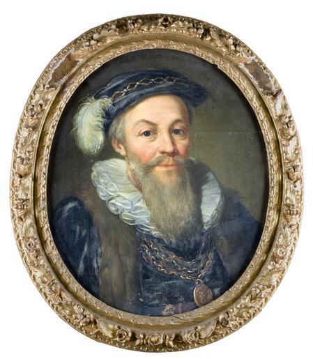 Keywords: Porträtt. Erik Johansson Vasa - Skoklosters slott - 87272.tif LSH artwork creator Lorens Pasch the Younger depicted person Erik Johansson Vasa riksråd plain text Äldre långt grått skägg Barett me dplym nedliggande pipkrage grå pälsbrämad dräkt guldkedor Grågrön bakgrund Limmad spännram <br/>På dukens baksida skrivet med bläck Herr Erik Johansson Wasa till Ridboholm Lindholm och Räffsnäs Riddare Riksråd och Ståthållare på Åland och Castelholms slott halshyggen 1520 af Kong Christian tyrann Lns Pasch f 82 et litet <br/>På spännramens nedre list skrivet Professor Pasch upp och ned med blyerts Oval förgylld ram med skulpterade rosor och pastellageornament bredd 80 mm original caption Porträtt Erik Johansson Vasa SKO 11327<br/> Nyckelord Skägg Vasa Erik Pipkrage Pasch d y Ram Föremålsbild 1782 oil on canvas size mm 510 630 SKO place of origin original filename sm_dig4911_11327 32341 inventory number SKO 11327 87272 PD Jens Mohr Jens Mohr Ruffs Portrait paintings Media contributed by LSH unmatched creator Media contributed by LSH unmatched keyword Lorens Pasch the Younger Media contributed by LSH 2013-10