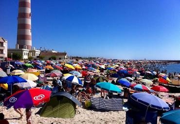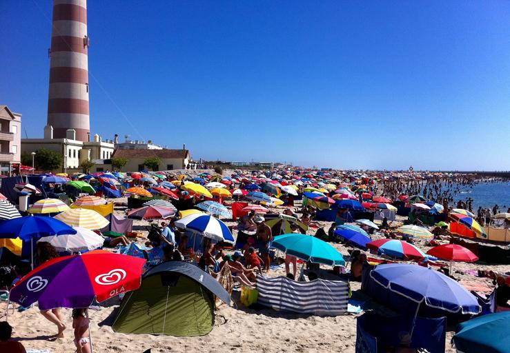 Keywords: portugal ilhavo beach a bar umbrellas sand lighthouse ocean atlantic sea waves