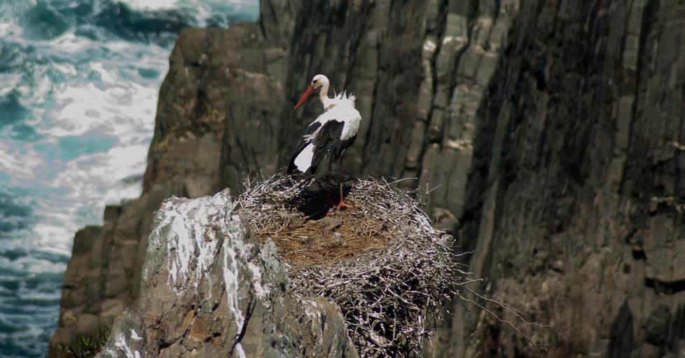 Keywords: portugal stork nest cliff bird