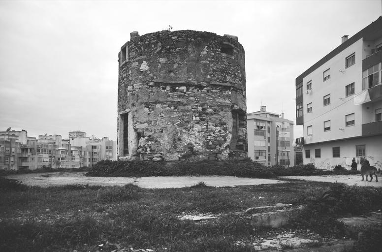 Keywords: portugal suburbs home black and white window sky lisbon wall brick project