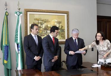 Keywords: posse indoor Deputados Plauto Miró (DEM), Bernardo Ribas Carli (PSDB) e Valdir Rossoni (PSDB) Foto: Nani Gois Deputados Plauto Miró (DEM), Bernardo Ribas Carli (PSDB) e Valdir Rossoni (PSDB) Foto: Nani Gois