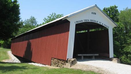 Keywords: Possum Bottom Covered Bridge, southeastern angle.jpg 94000584 39 47 50 N 87 27 13 W Eastern portal and southern side of the w Possum Bottom Covered Bridge located in the Ernie Pyle Rest Park on the northern side of U S Route 36 southeast of Dana Indiana Dana in Helt Township Vermillion County Indiana Helt Township Vermillion County Indiana Vermillion County Indiana United States Built in 1876 it is listed on the National Register of Historic Places own 2012-05-18 User Nyttend Nyttend Possum Bottom Covered Bridge Building-centered pictures by User Nyttend Taken with Canon PowerShot A540 |