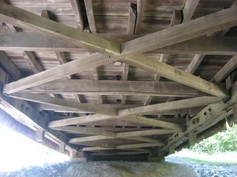 Keywords: Possum Bottom Covered Bridge, underside.jpg 94000584 39 47 50 N 87 27 13 W Trusses on the underside of the w Possum Bottom Covered Bridge located in the Ernie Pyle Rest Park on the northern side of U S Route 36 southeast of Dana Indiana Dana in Helt Township Vermillion County Indiana Helt Township Vermillion County Indiana Vermillion County Indiana United States Built in 1876 it is listed on the National Register of Historic Places own 2012-05-18 User Nyttend Nyttend No<nowiki></nowiki>ne Possum Bottom Covered Bridge Undersides of bridges in the United States Building-centered pictures by User Nyttend Taken with Canon PowerShot A540 |