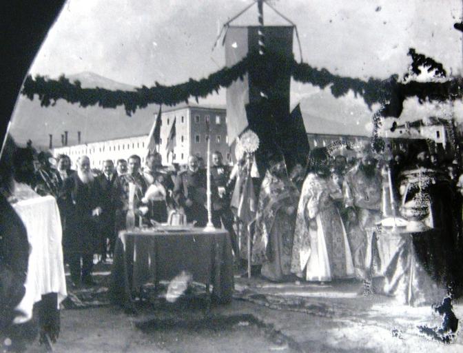 | Keywords: Postavuvanje temeli za crkva.jpg  mk Поставување на камен темелник на една ц ква во денешен Г адски па к од ст ана на с пскиот п естолонаследник Александа I  а сликата се гледаат Паши и мит ополитот Ва нава Битола 1913 година ск шена плоча en Laying the foundation stone of a church in present-day this is in the City Park by Serbian Crown Prince Alexander I On the image there are Pasic and Metropolitan Barnabas Bitola 1913 Broken glass plate DARM archive 1913 The State Archives of the Republic of Macedonia DARM Bitola Department Creator Yanaki and Milton Manaki other versions Custom license marker 2016 10 11 PD-Macedonia Wikipedian in Residence at DARM Photographs by Manaki Brothers Historical images of Bitola |