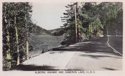 | Keywords: photo border outdoor "Alberni Highway and Cameron Lake, V.I., B. C." Post Card. Made in Canada by The Gowen, Sutton Co. Ltd., Vancouver, B.C. The Alberni Highway between Parksville and Alberni/Port Alberni, BC on Vancouver Island (originally designated Hwy. 1A [1942-53]; later Hwy. 4 [1953-present]). "Alberni Highway and Cameron Lake, V.I., B. C." Post Card. Made in Canada by The Gowen, Sutton Co. Ltd., Vancouver, B.C. The Alberni Highway between Parksville and Alberni/Port Alberni, BC on Vancouver Island (originally designated Hwy. 1A [1942-53]; later Hwy. 4 [1953-present]). |