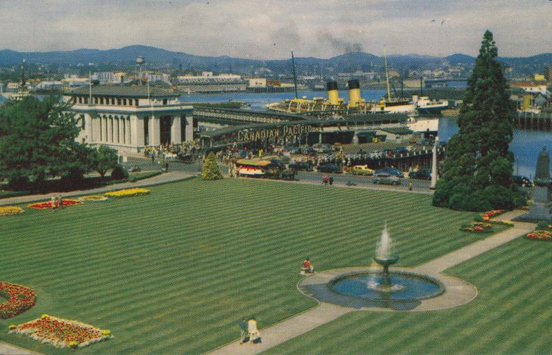 | Keywords: outdoor "K70 VICTORIA, B. C., CANADA C.P.R. Building and Steamer" Copyright Kodachrome Card. Litho'd in Van., B.C. Canada. Color Photograph and Published by The Coast Publishing Co., Vancouver, Canada. View looking NW from the British Columbia Legislative Building over the lawn and towards the Canadian Pacific Steamship terminal and the Inner Harbour in Victoria, BC on Vancouver Island. "K70 VICTORIA, B. C., CANADA C.P.R. Building and Steamer" Copyright Kodachrome Card. Litho'd in Van., B.C. Canada. Color Photograph and Published by The Coast Publishing Co., Vancouver, Canada. View looking NW from the British Columbia Legislative Building over the lawn and towards the Canadian Pacific Steamship terminal and the Inner Harbour in Victoria, BC on Vancouver Island. |
