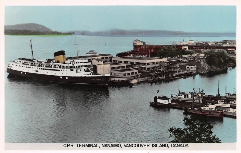Keywords: outdoor waterfront water "C.P.R. Terminal, Nanaimo, Vancouver Island, Canada." SceneOchroM. Made in Canada by The Gowen, Sutton Co. Ltd., Vancouver, B.C. "C.P.R. Terminal, Nanaimo, Vancouver Island, Canada." SceneOchroM. Made in Canada by The Gowen, Sutton Co. Ltd., Vancouver, B.C. |