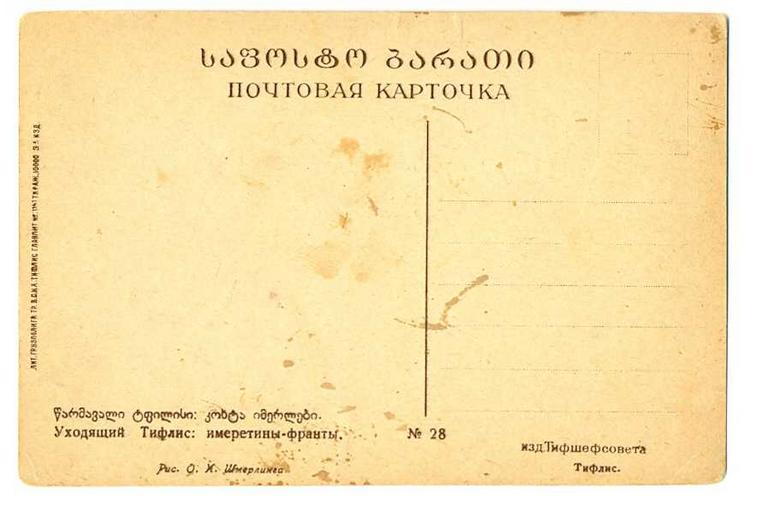 | Keywords: Postcard. Imeretian Kintos. Tiflis .Schmerling. 1920s. Back dide.jpg en Postcard Imeretian Kintos Tiflis Schmerling 1920s Back dide Photo obtained at Ebay 140419926026 Creator Oskar Shmerling s 1920 left 100px thumb Front side PD-Russia-2008 Old Tbilisi by Oskar Shmerling Postcards of Tiflis Governorate |