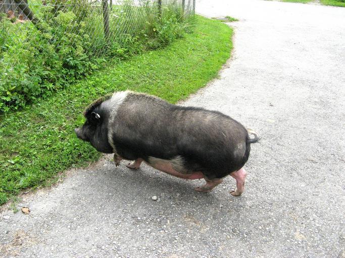 Keywords: pot bellied pig animal pigs thick fat pig art livestock road